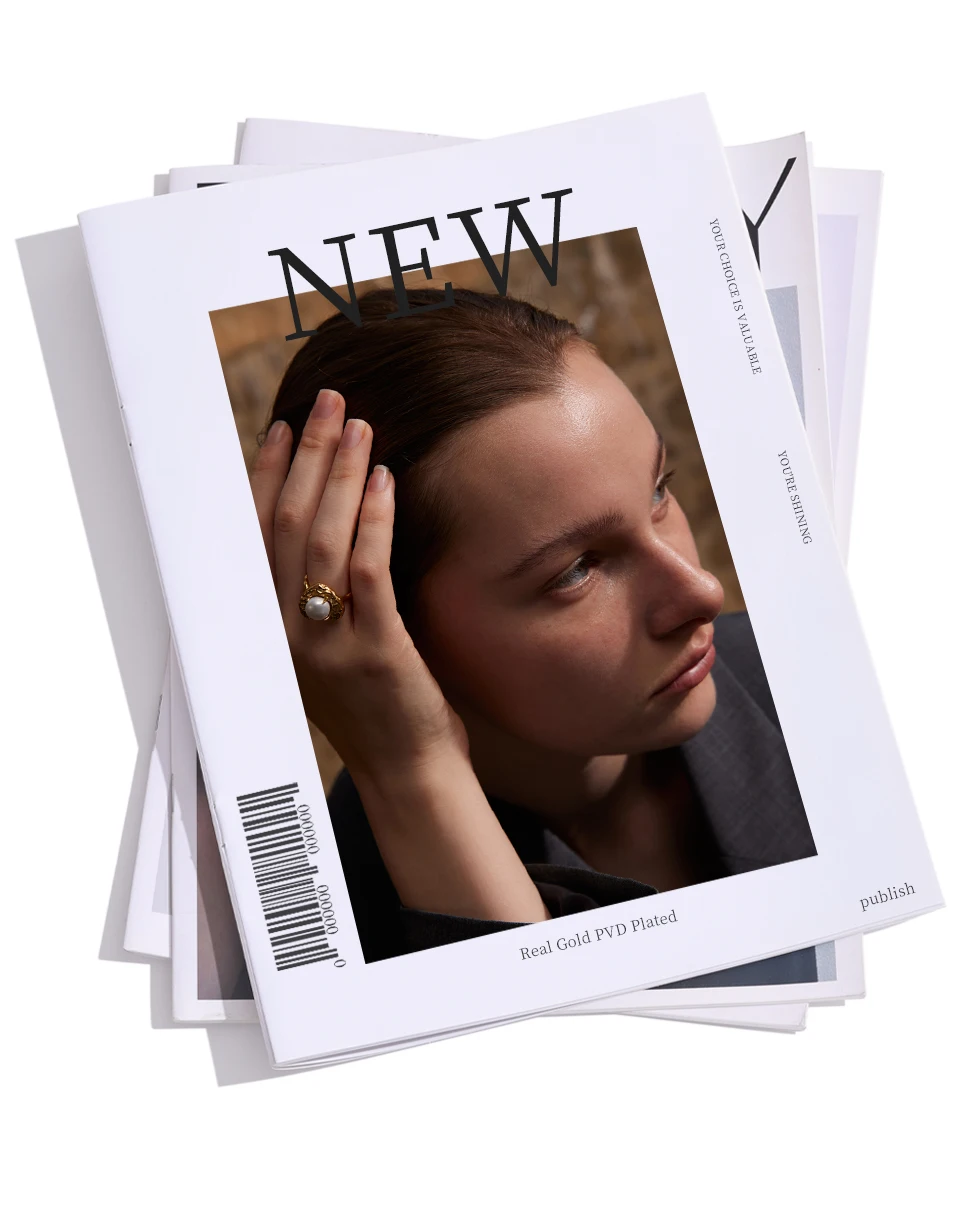 Anel aberto de pérolas - Aço Inoxidável Banho PVD Gold