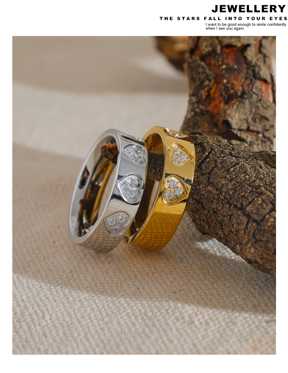 Anel Cubic Zirconia Anel Do Coração - Aço inoxidável - Banho PVD 18K