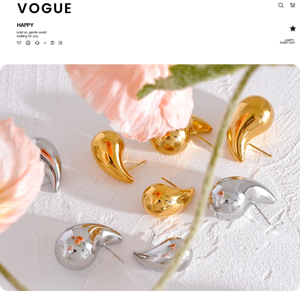 Binco gota de água - Aço Inoxidável - Banho em PVD Real Gold