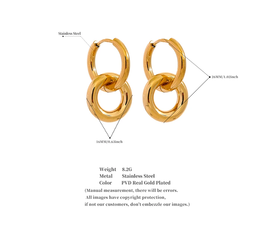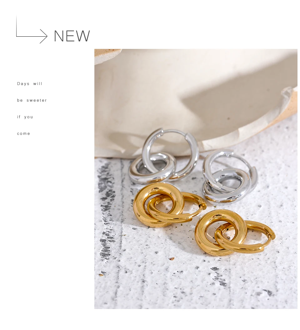 Brincos de argola redondo - Aço Inoxidável - Banho em PVD Real Gold