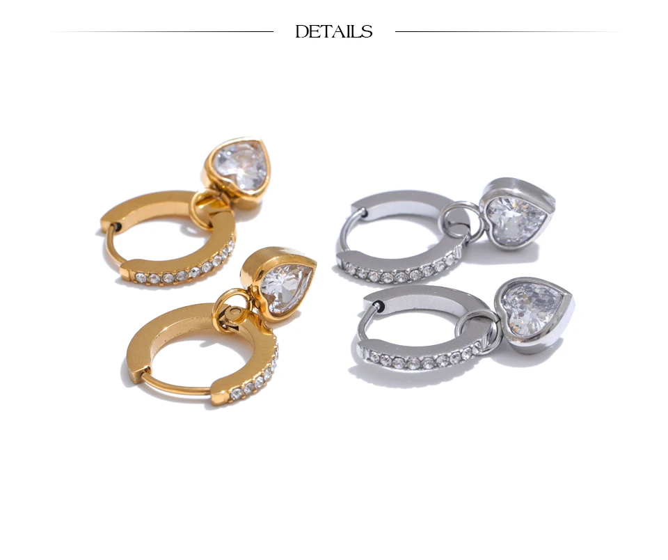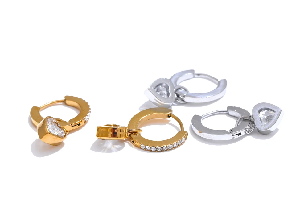Eleve o seu estilo com esses brincos deslumbrantes, confeccionados em aço inoxidável de alta qualidade e banhados a ouro 18k, garantindo resistência e durabilidade. As pedras de zircônia, com seu brilho intenso e semelhança com diamantes, adicionam um toque de sofisticação e glamour à peça. Perfeitos para qualquer ocasião, esses brincos são ideais para complementar tanto um look casual quanto um mais formal, proporcionando elegância e charme.
